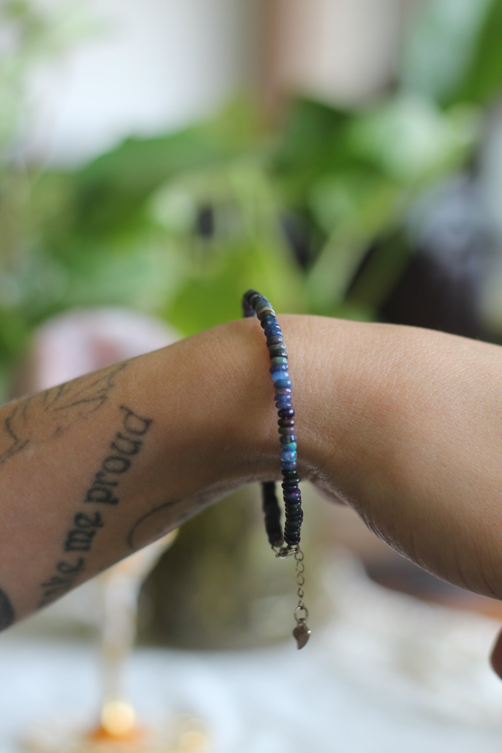 This listing is for ONE black opal bracelet that will be intuitively selected from the ones you see in the photos. While some black opals are natural, these have been heat treated to intensify the colors. These have a simple clasp for easy wear and are not stretchy. If you have any questions or concerns please contact me before purchasing thank you!