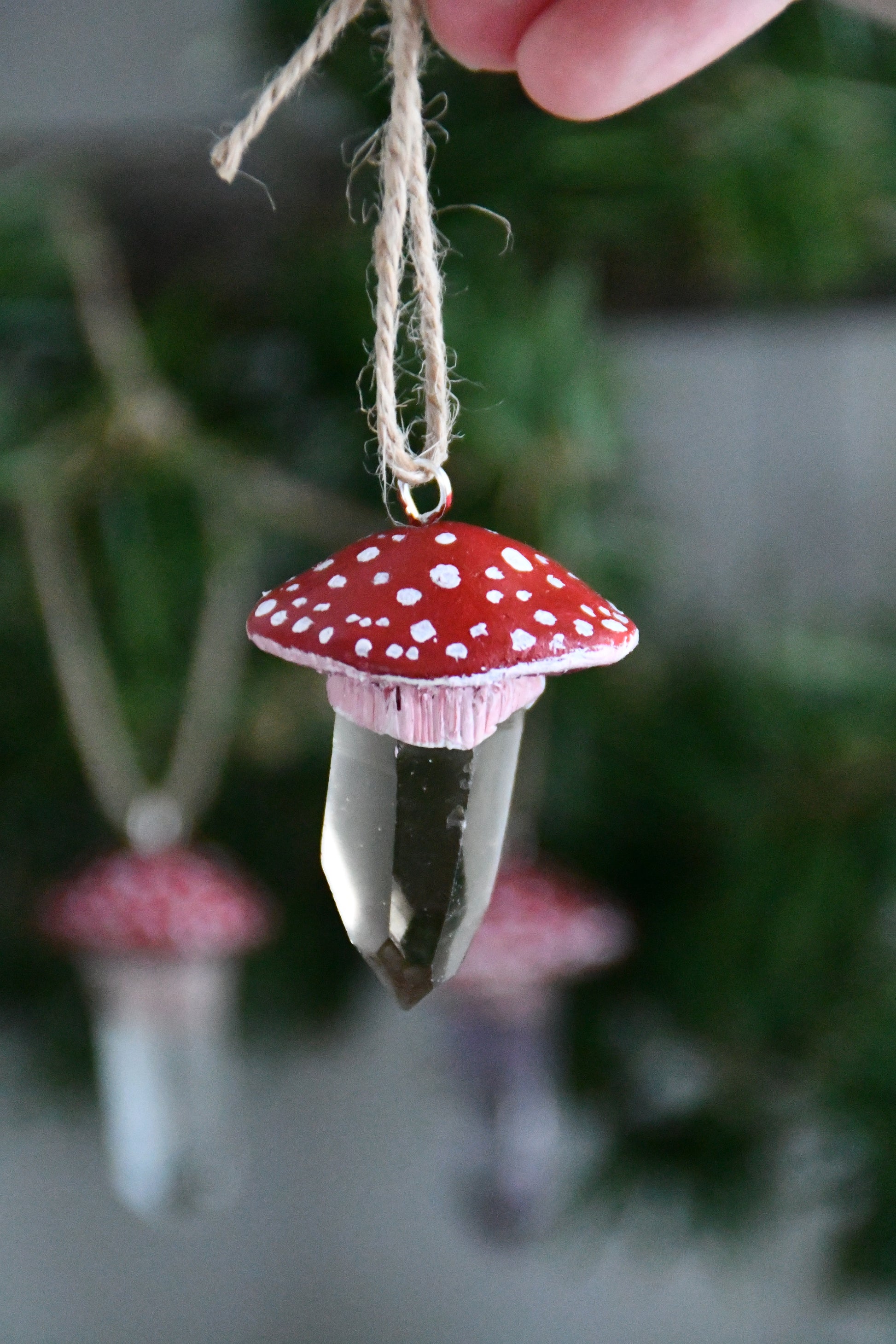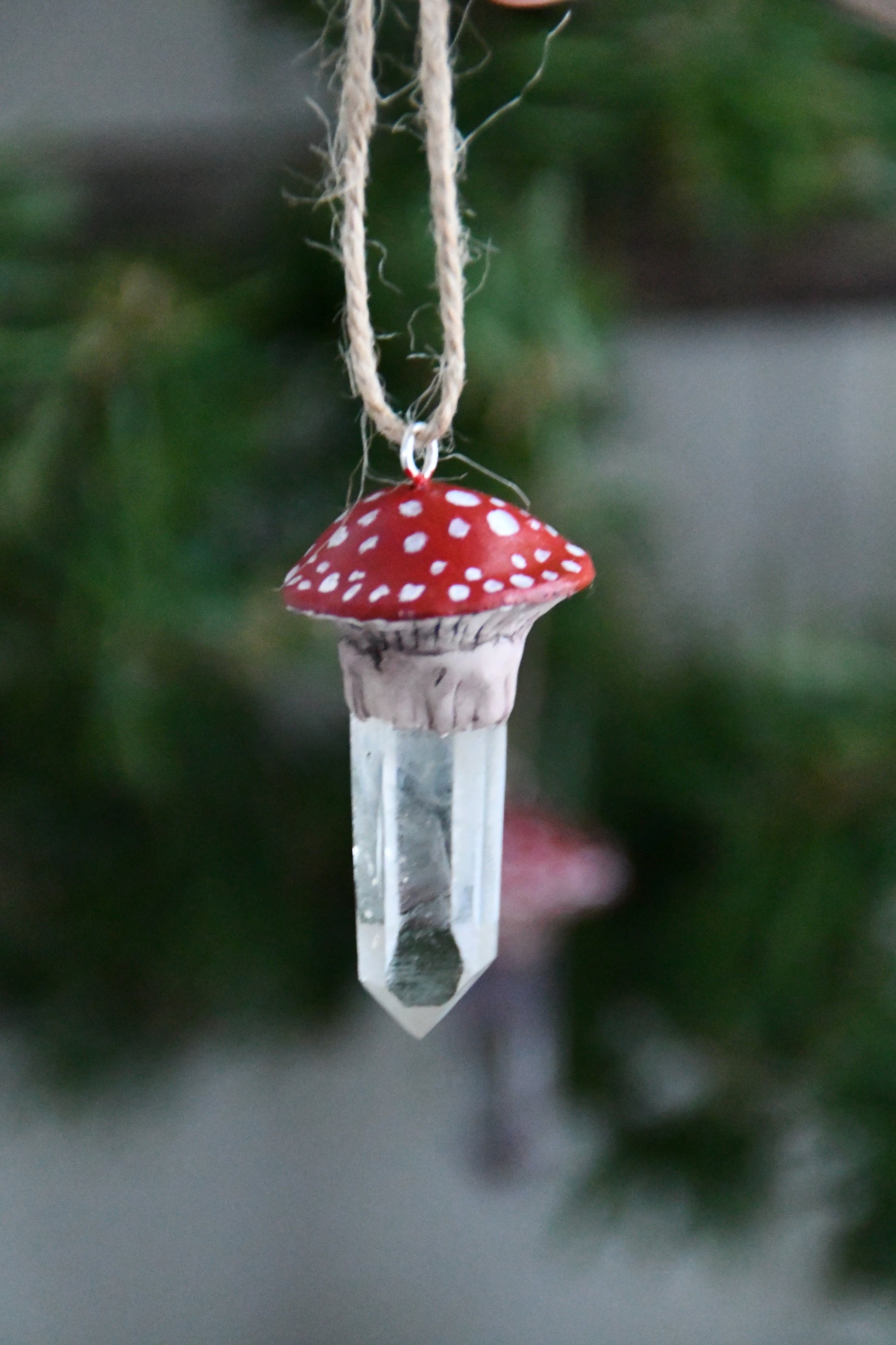 Beautiful and simple hand sculpted mushroom caps on top of crystal points. You can choose which one you would like by selecting from the variations when adding to your cart! Each one is hand sculpted and painted with acrylic paint and sealed. For decorative purposes only, keep out of reach of children and pets!