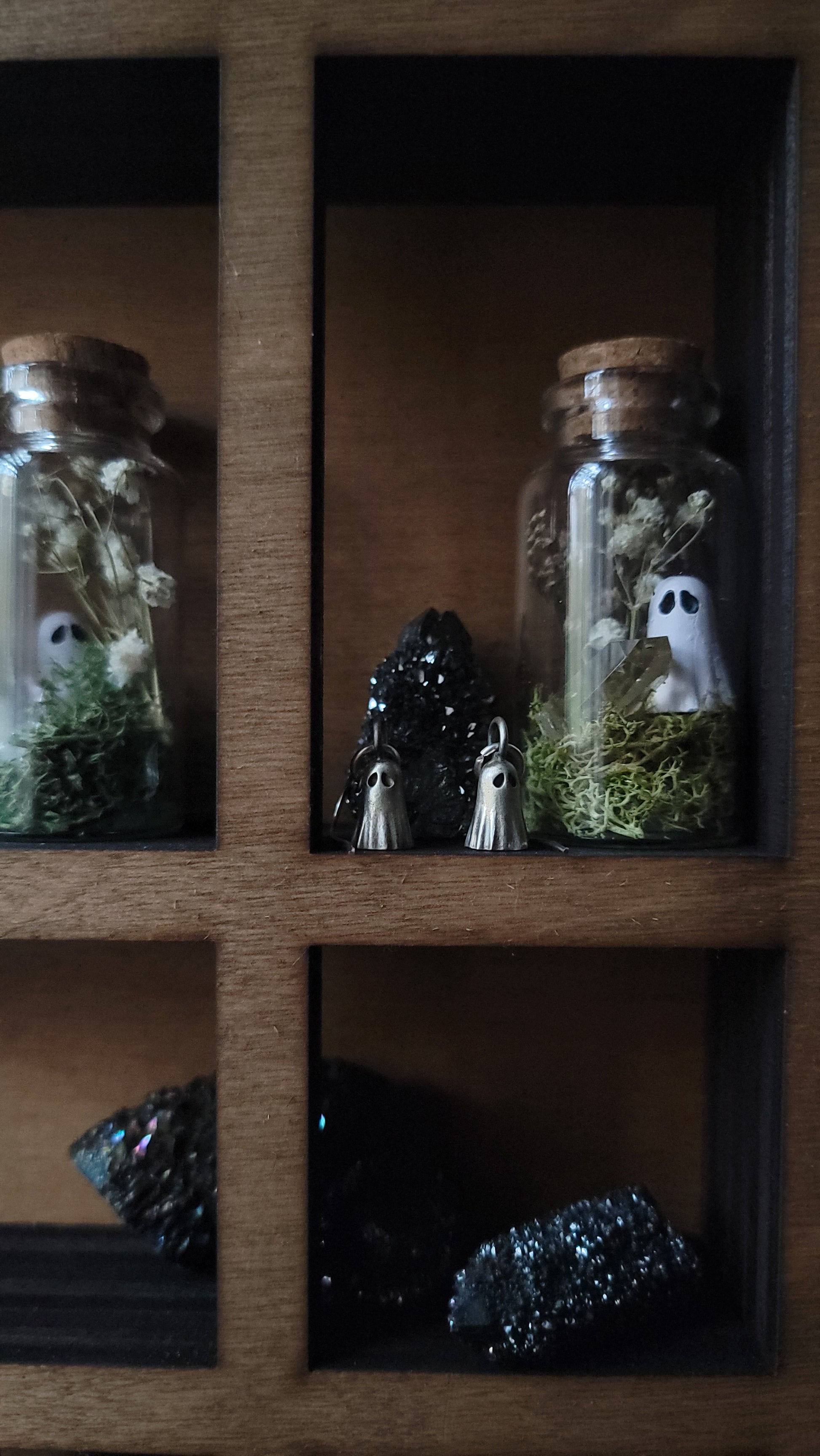 A pair of spooky sheet ghosts cast in solid silver from my very own 3d print, hanging from surgical steel ear hooks for a nice little spooky accessory. If you have any questions or concerns about these please contact me before purchasing thank you!