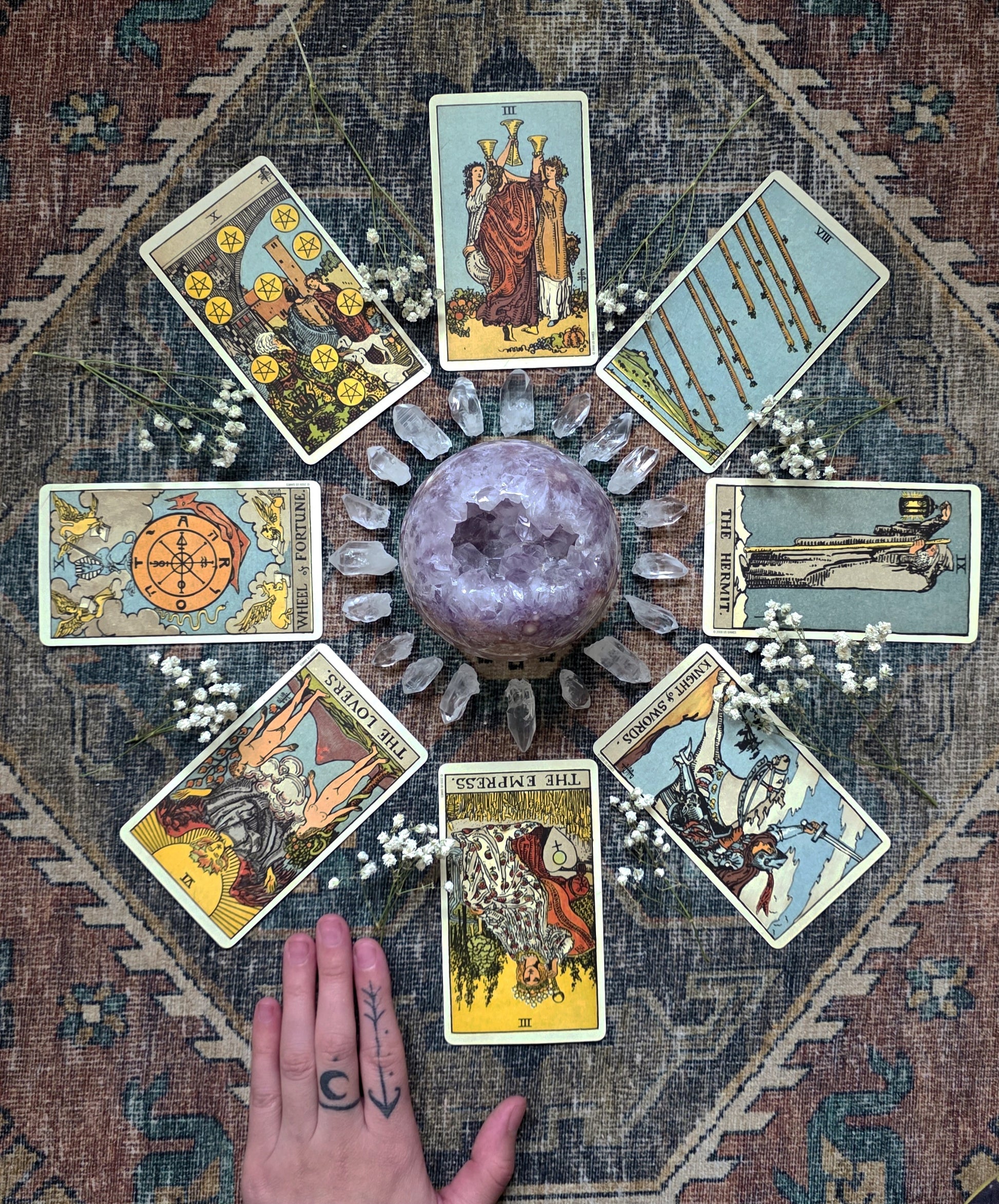 This is a twelve card pull for the main portion with additional six card indicators and messages to tie into the bigger message. Because of the time it will take to reflect on and write up your reading, it will be delivered in a 3 day time frame. This isn't meant to give quick answers and solutions, it's meant for reflection to add to your own magic and practices. You will receive a photo to go along with your write up and an explanation of the placements of each card. At the end of the breakdown of each card, there will also be a synopsis to bring it all back together.