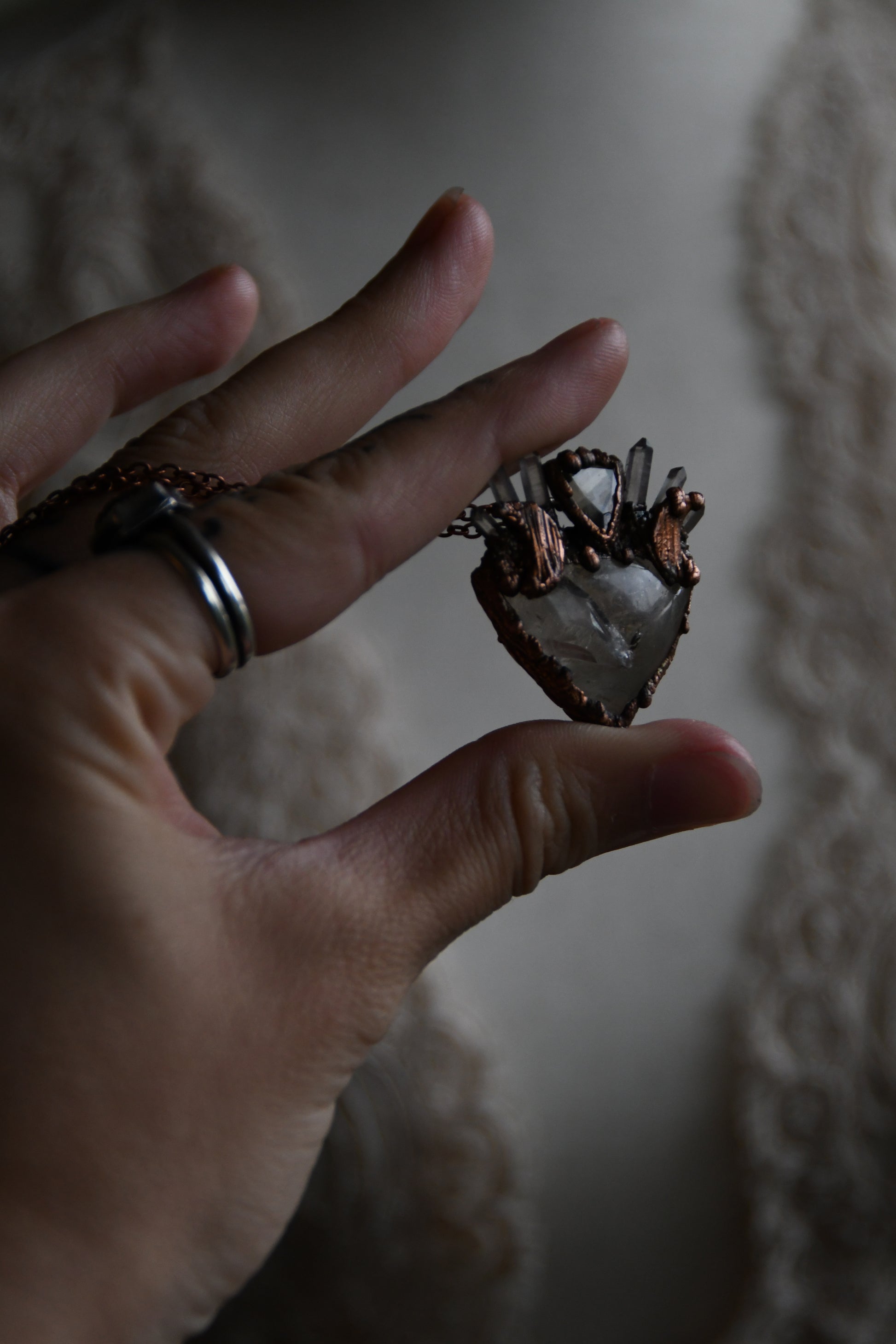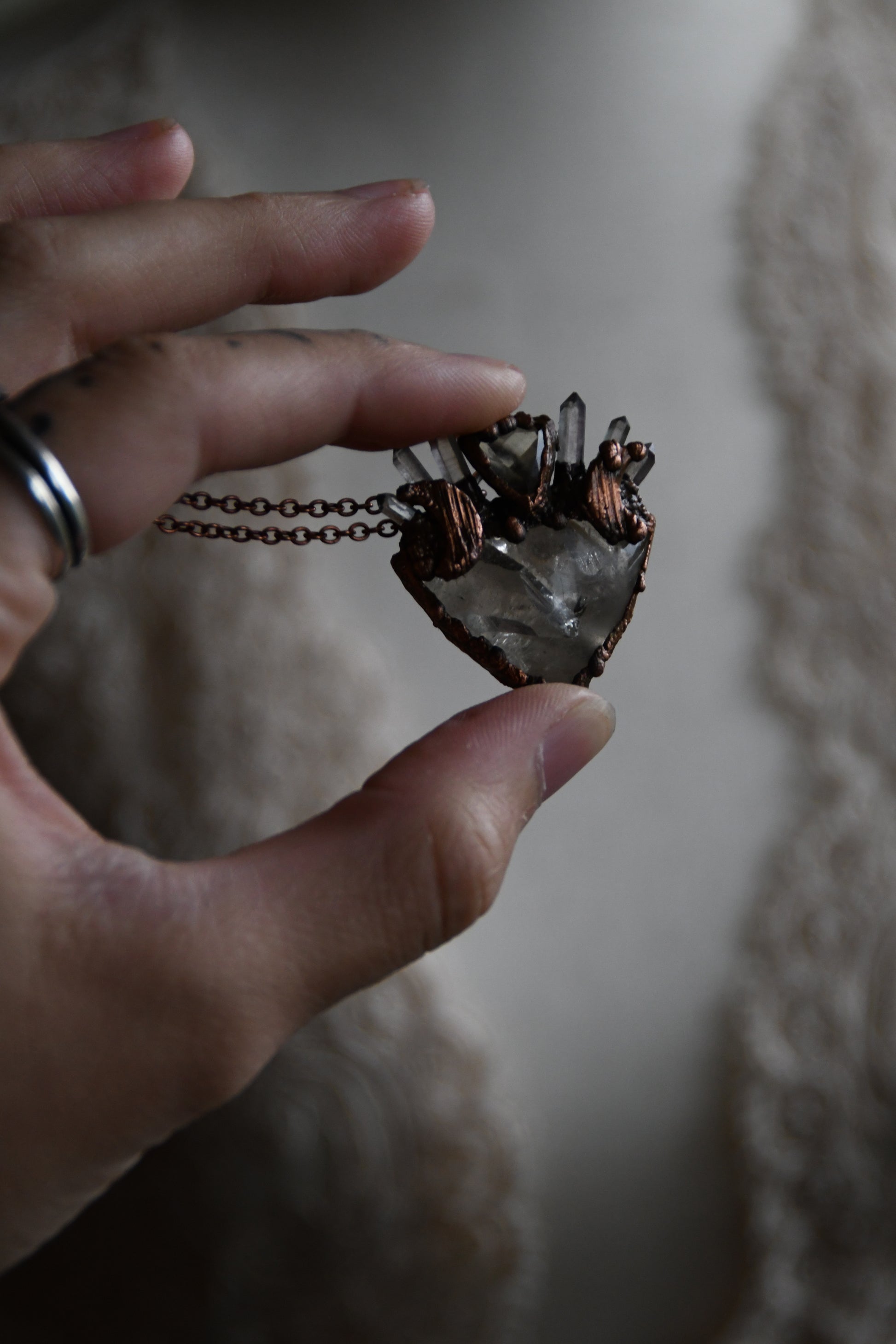 Coated in copper using a technique known as electroforming, this comes on 18" of antique copper chain with a simple clasp. If you have any questions or concerns about this piece please contact me before purchasing thank you!