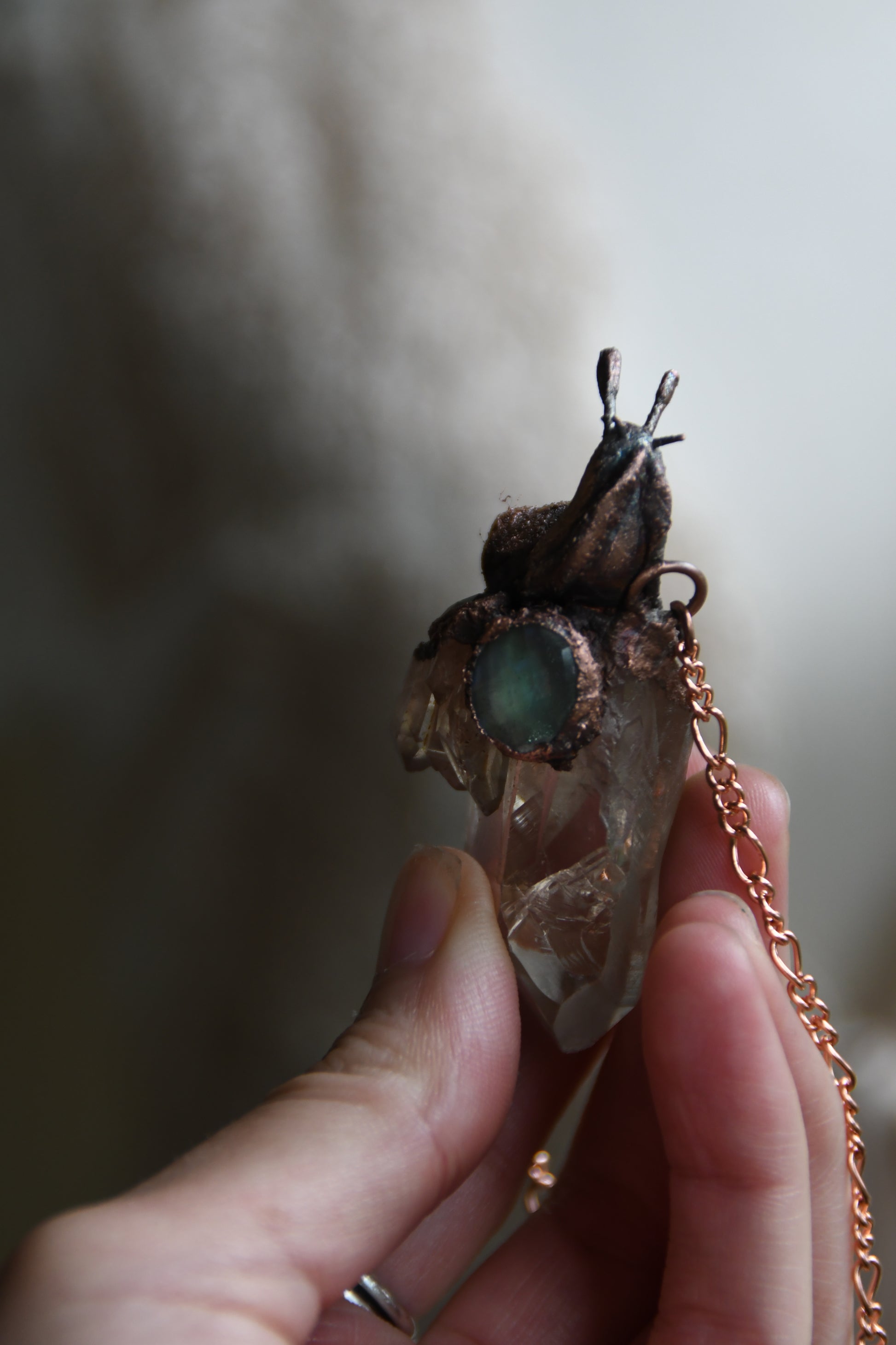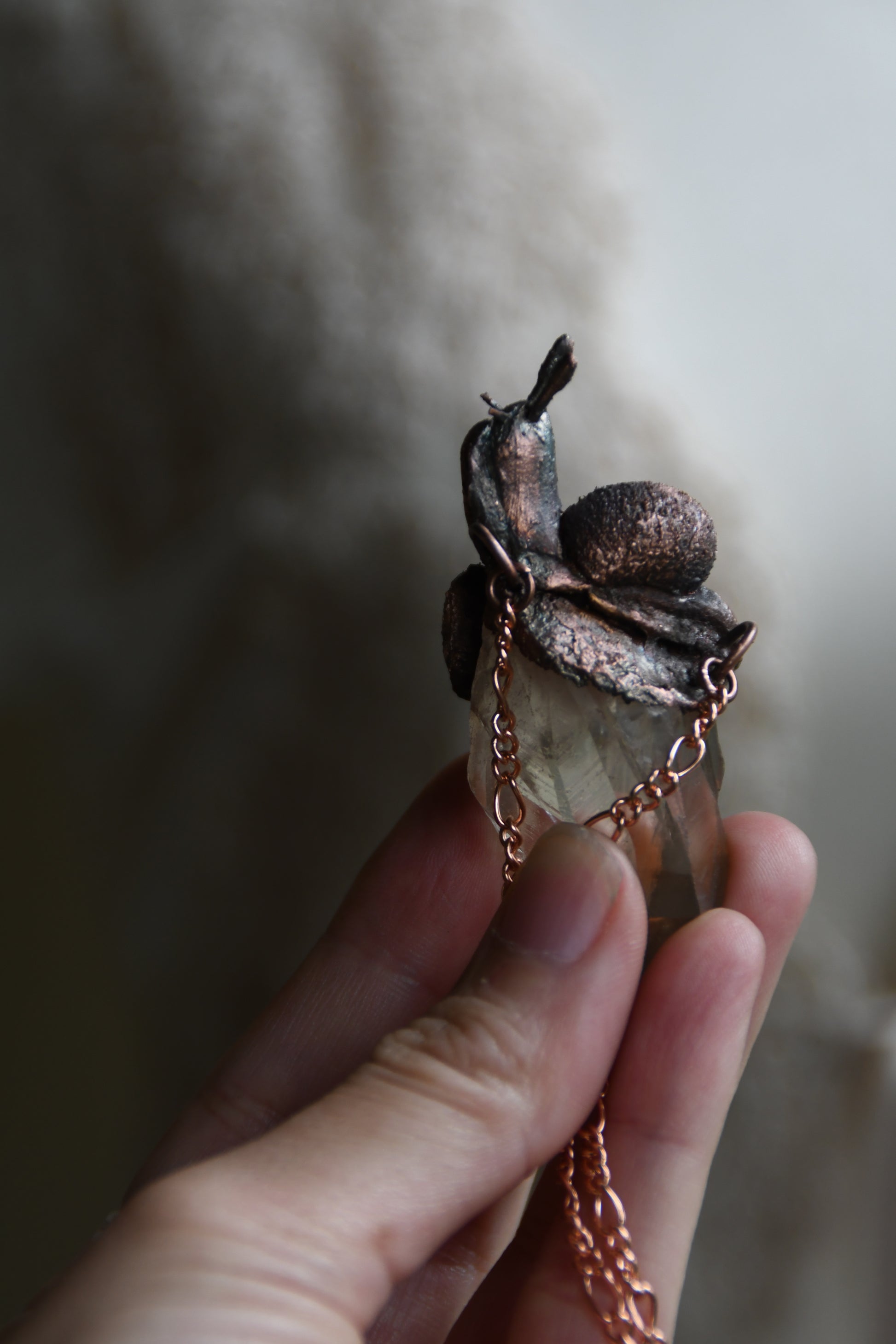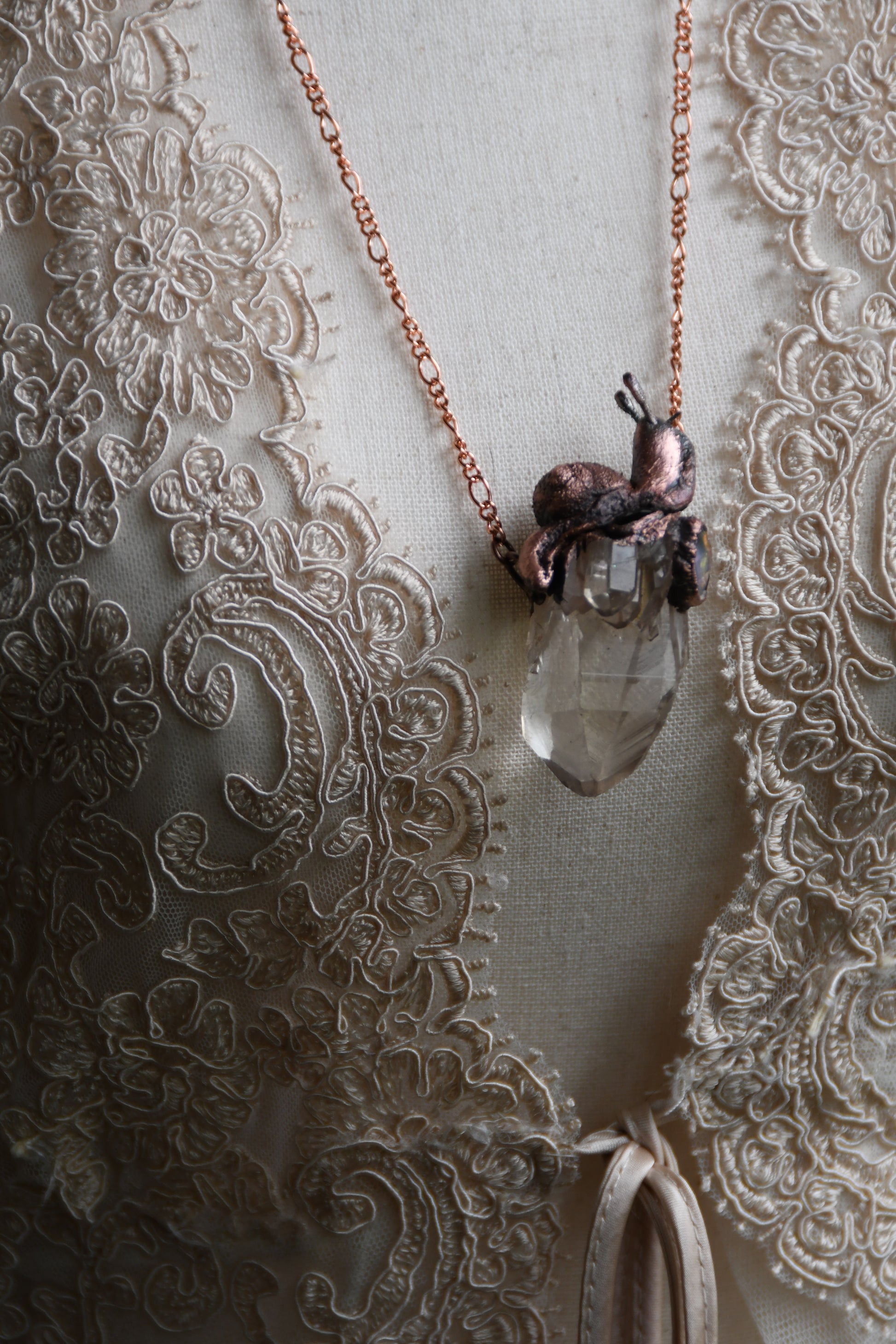 Coated in copper using a technique known as electroforming, this comes on 24" of copper chain with a simple clasp. If you have any questions or concerns about this piece please contact me before purchasing thank you!