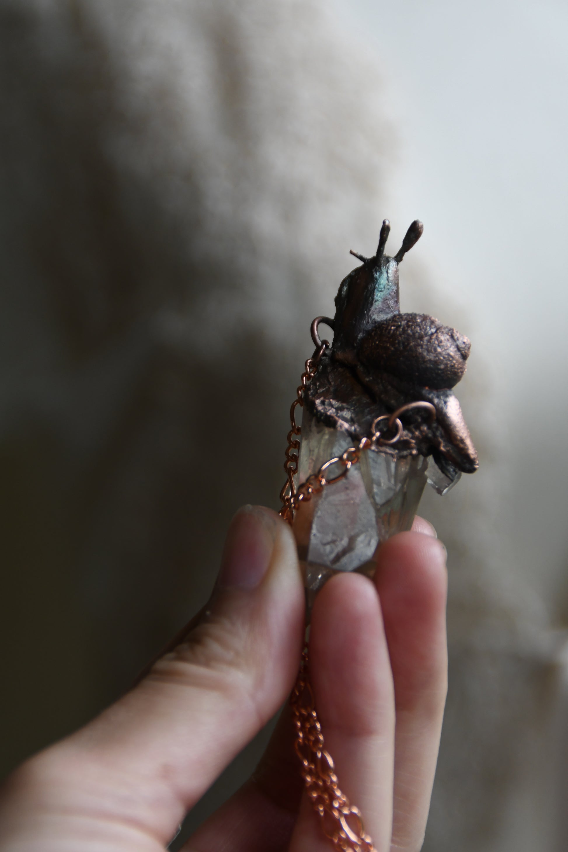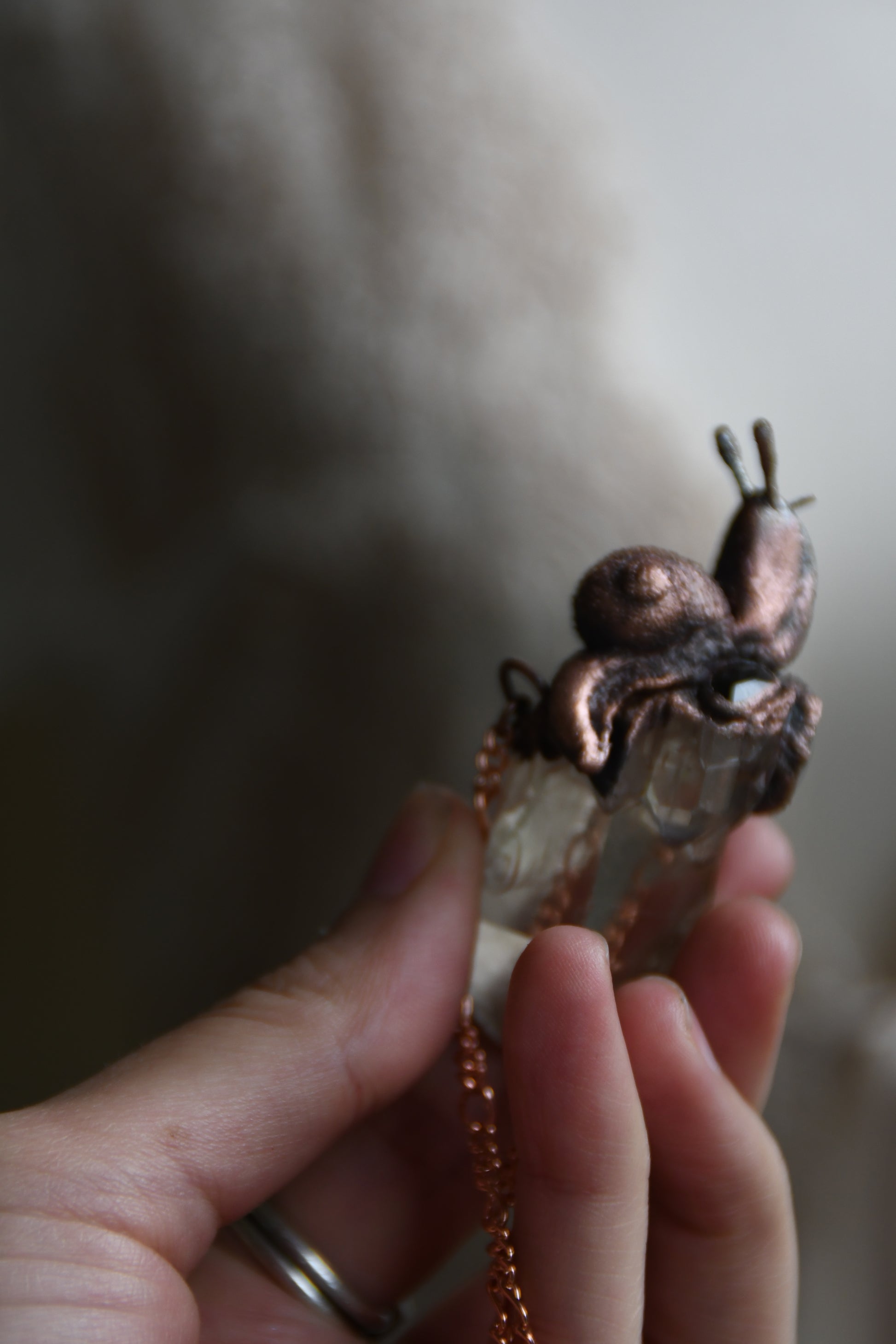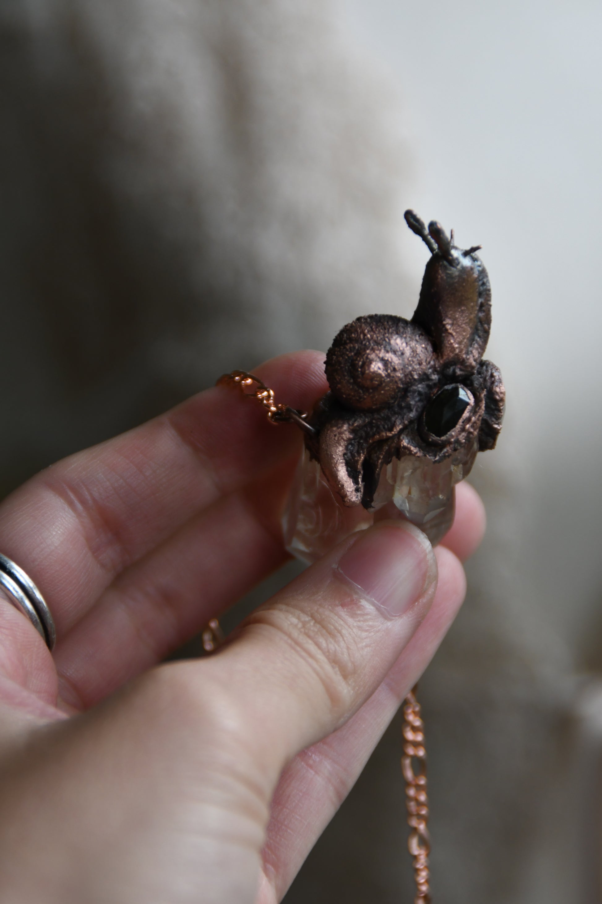 Coated in copper using a technique known as electroforming, this comes on 24" of copper chain with a simple clasp. If you have any questions or concerns about this piece please contact me before purchasing thank you!