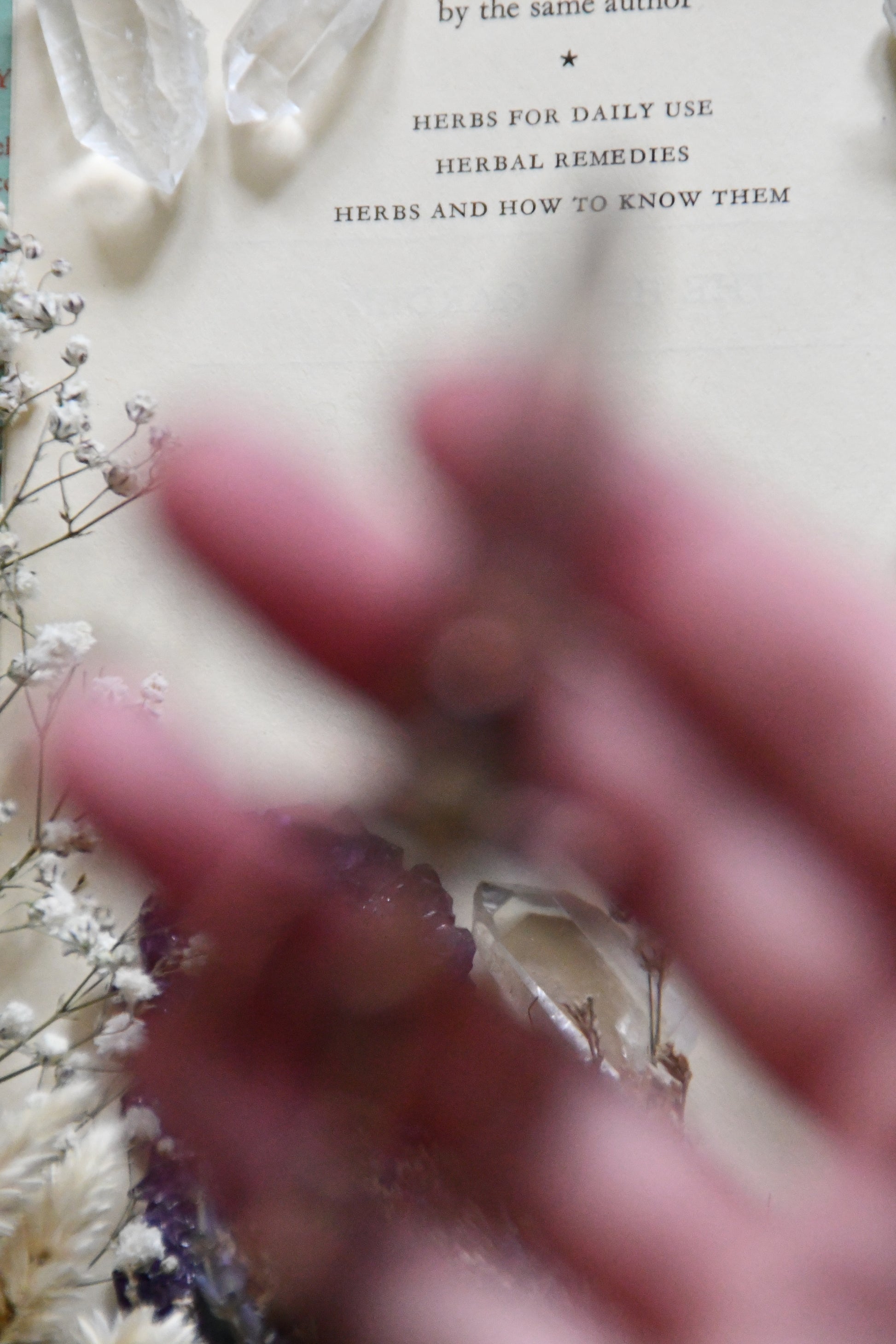 All of my jewelry is handmade and should be treated as such. Please refrain from showering with your jewelry on, or taking it where it can be damaged by water. Please do not store in direct sunlight as I use a variety of crystals and minerals in my work, and direct sunlight can sometimes dull the color of these natural materials.