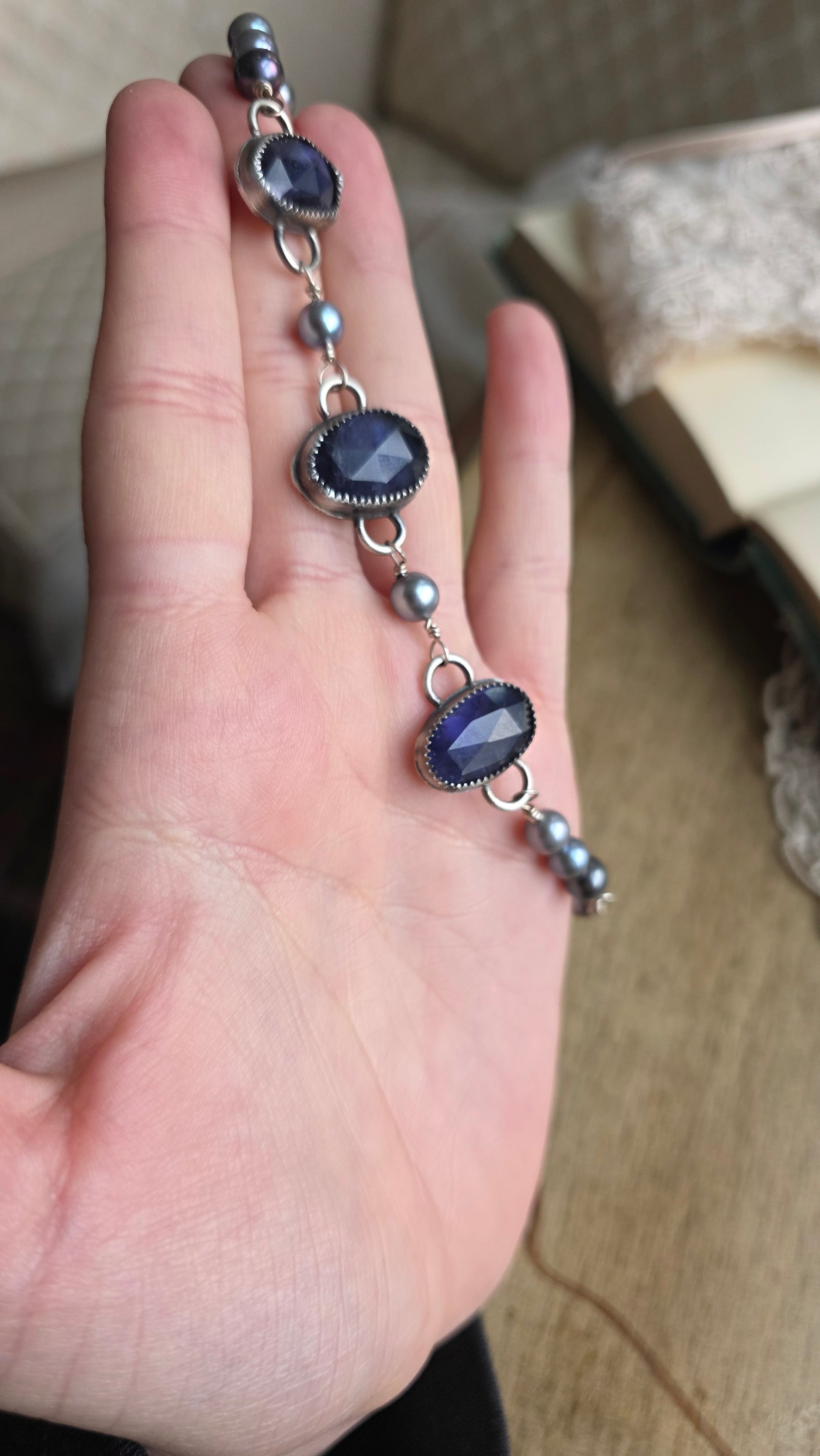 Sterling silver Blue Kyanite and Fresh Water Pearl Choker