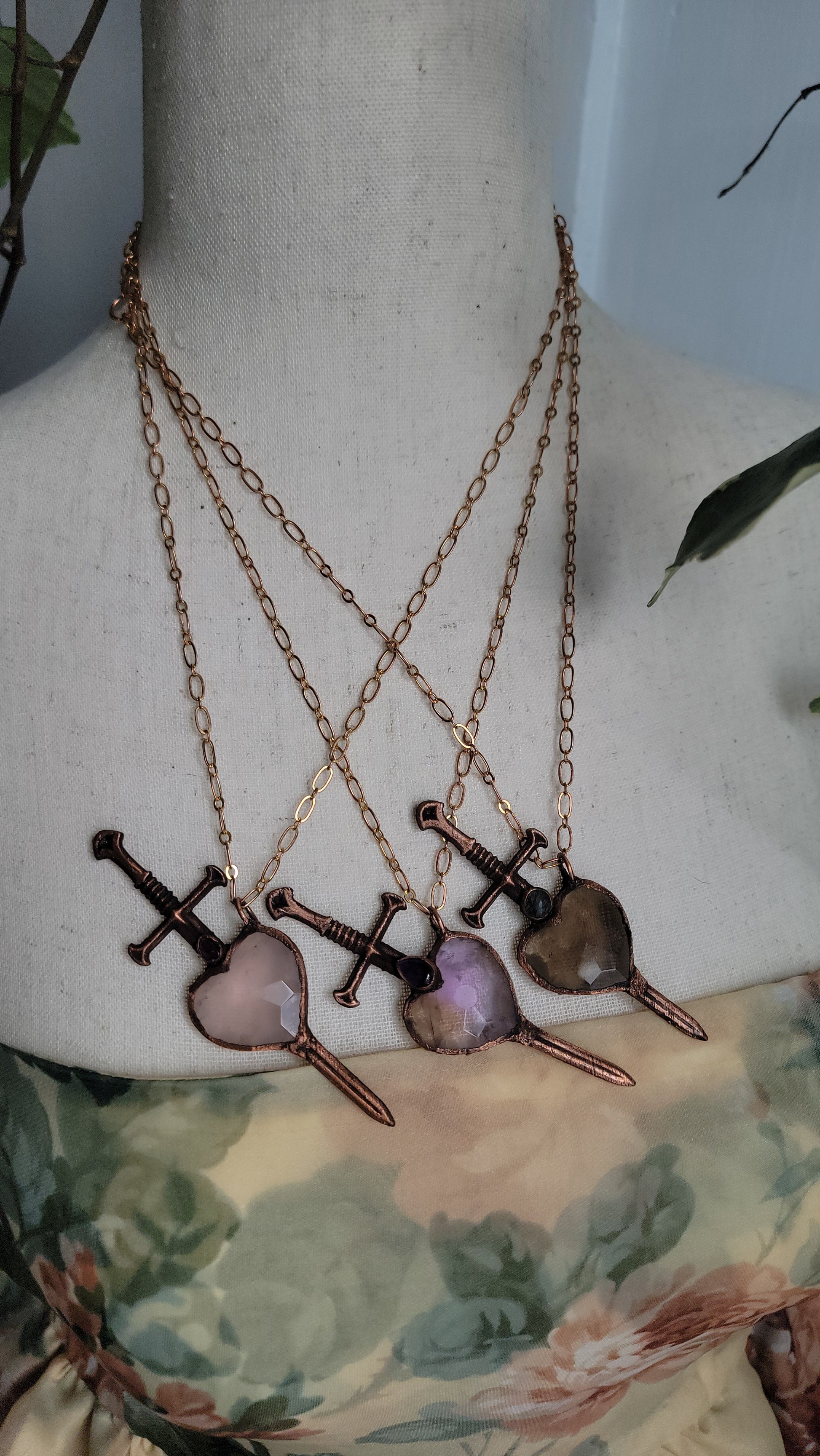 Venus Grunge: Sword Suit Faceted Heart Copper Necklace